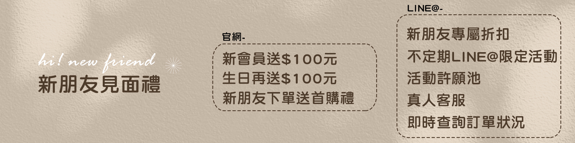 於官網註冊後會新會員100元購物金會自動發送至會員帳號,有效期間180天。
