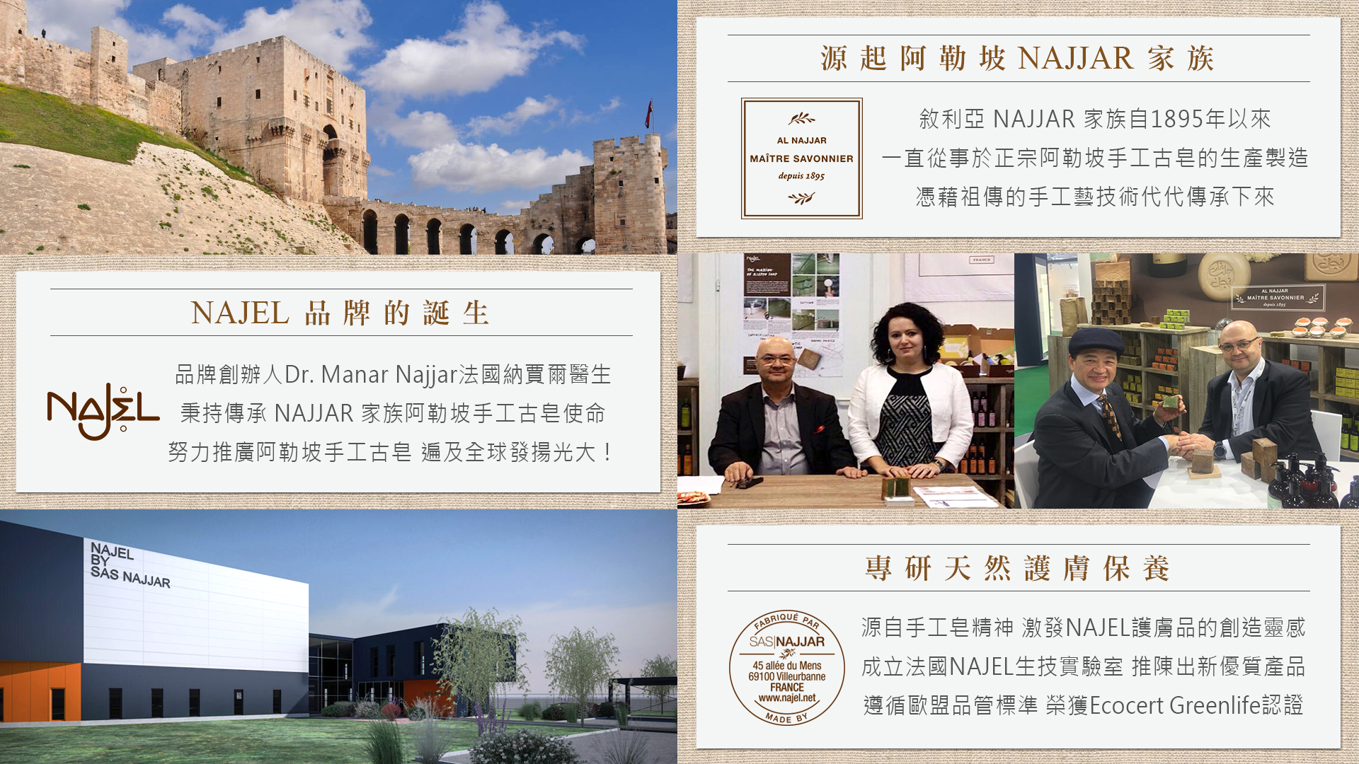 自 1895 年起,敘利亞 NAJJAR 家族專注於製作阿勒坡傳統手工皂。品牌創始人 Dr. Nanar Najjar 則將之發揚光大。